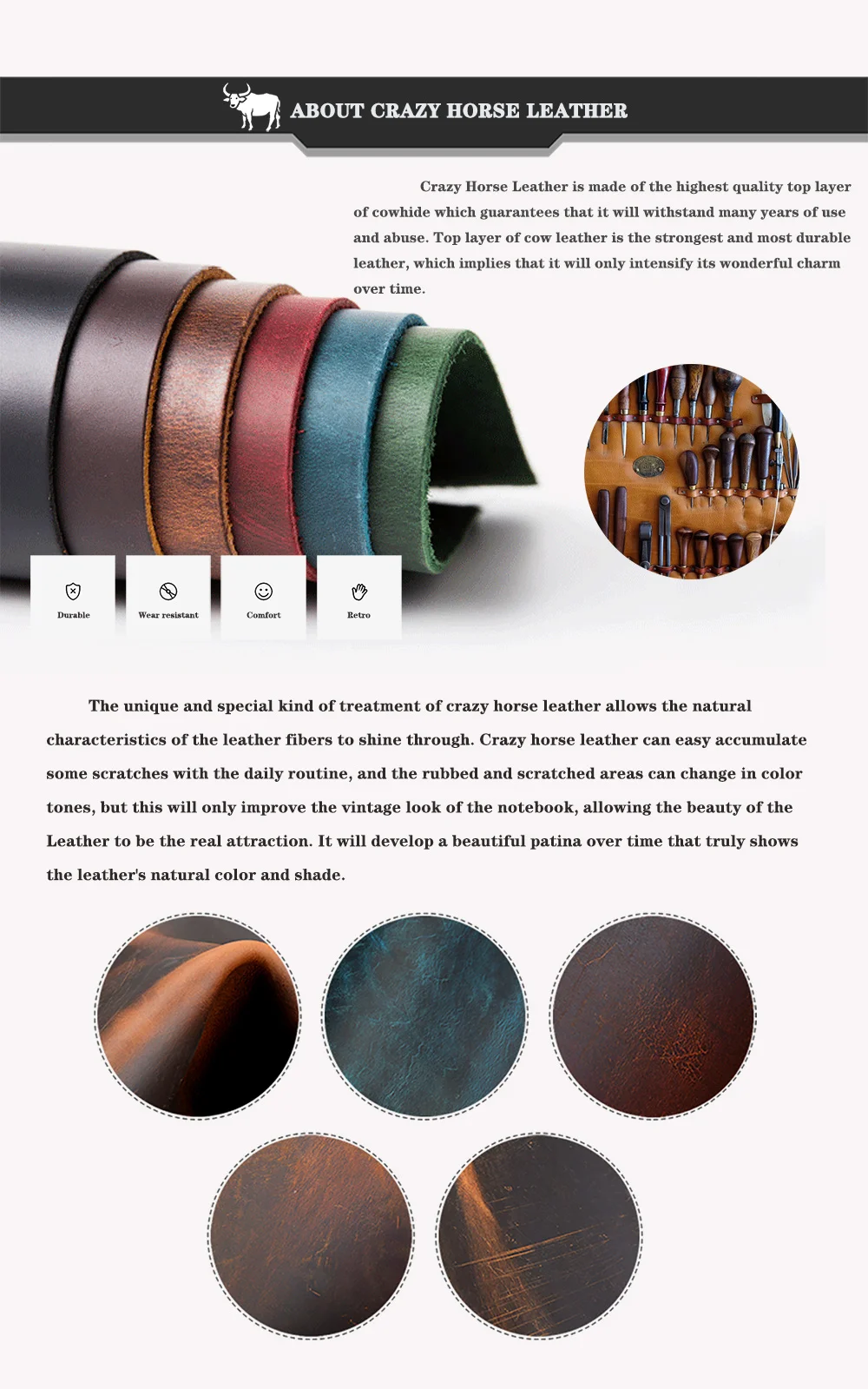 • It's made from crazy horse leather, it's soft and durable, and will become more and more beautiful over time.