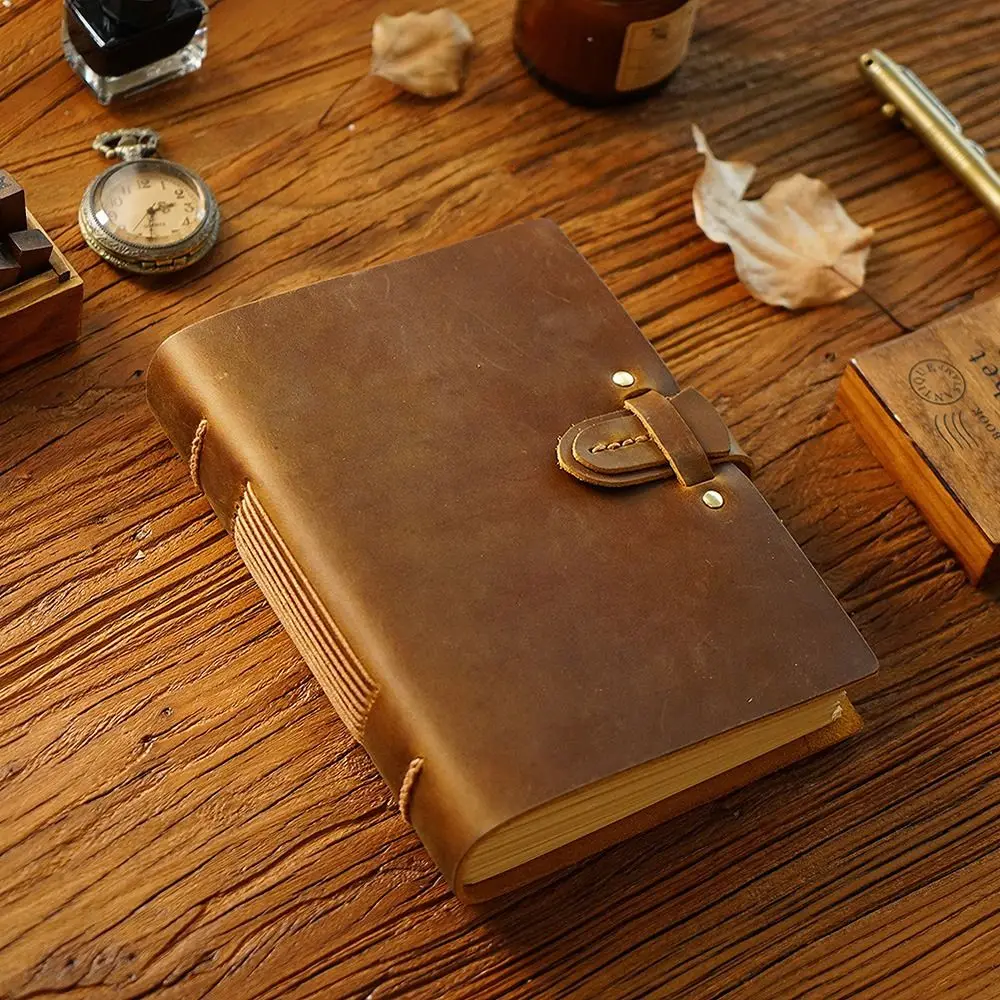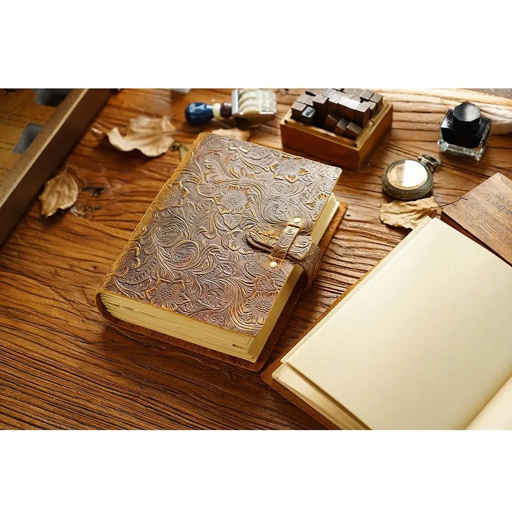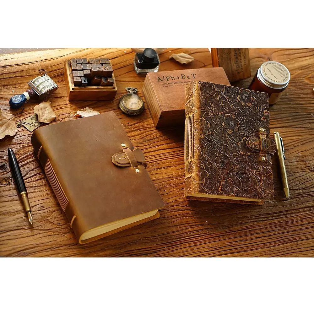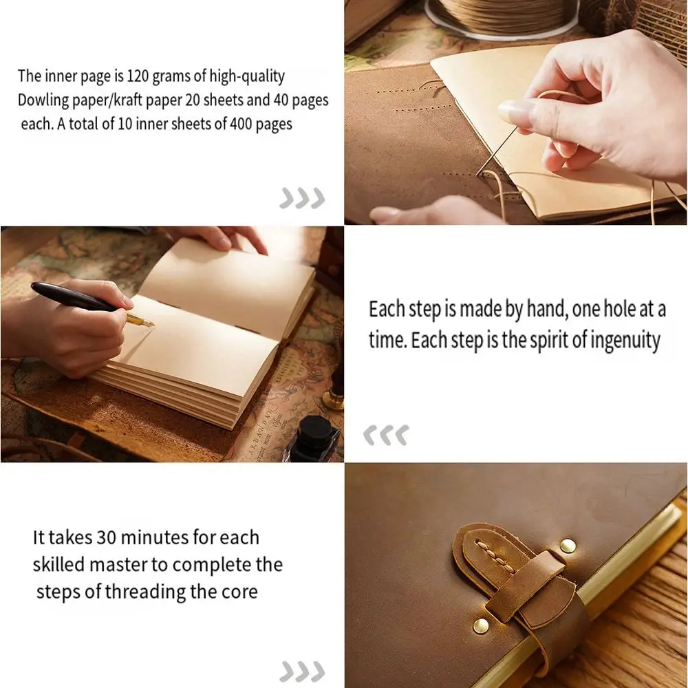 200 sheets (400 pages counting both sides) handcrafted paper manufactured using high-quality kraft paper, withstands ink bleed-through, shows pulp yellow, protects your vision while you can write fluently. Perfect for use with fountain pen, felt pen, and markers. Our vintage leather notebook is scribe-free; you can unleash your mind, write, and sketch to your heart's content on the sheets with blank design.